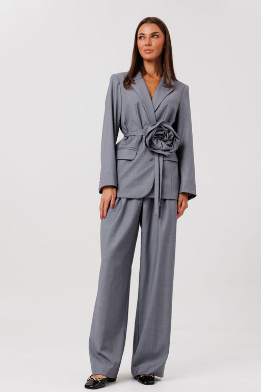 Состав: Вискоза-32%; ПЭ-65%; Спандекс-3%; Стильный гармоничный комплект, состоящий из жакета и свободных брюк в стиле палаццо. Жакет прямого свободного силуэта на подкладке, с двухшовным рукавом, длиной 61-62 см с закрытой шлицей, на которой вертикально расположены 4 пуговицы. Английский отложной на стойке воротник, застежка однобортная фронтальная петли/пуговицы с закругленными бортами. На полочке расположены горизонтальные прорезные фигурные карманы с клапаном. Спинка жакета имеет средний шов. Детали кроя имеют рельефный бочок для удачной посадки изделия. Длина изделия по среднему шву спинки 71-73 см в зависимости от размерного ряда. Брюки комплекта созданы в свободном стиле палаццо. В пояс брюк по спинке вставлена эластичная тесьма, шириной 3 см. Спереди пояс фиксируется горизонтально на петли/пуговицы и вертикалную закрытую клапан-молнию (гульфик). При желании в пояс можно вставить ремень, так как имеются шлевочные держатели. В боковых швах карманы с наклонным входом, на поясной линии талии расположены две неглубокие складки для свободы движения. Длина брюк по боковому шву 105-107 см в зависимости от размерного ряда. Дополнительно в комплекте присутствует текстильный пояс и текстильная брошь. (фурнитура может отличаться от представленной на рекламном фотоматериале) Особые рекомендации: рекомендуется холодная деликатная ручная стирка, без использования отбеливающих СМС, без интенсивного трения. Сушка в вертикальном положении. ВТО с минимальным паром. -- Характеристики -- Состав: Вискоза-32%; ПЭ-65%; Спандекс-3%; Сезон: Осень-Зима Рост: 164 Страна бренда: Беларусь