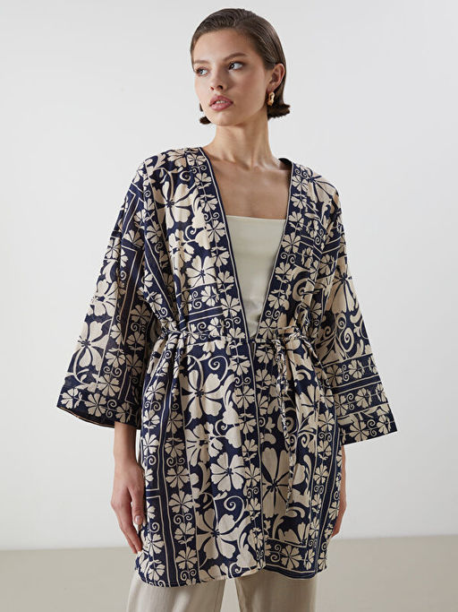 ?al Yaka Desenli Oversize Kad?n Kimono