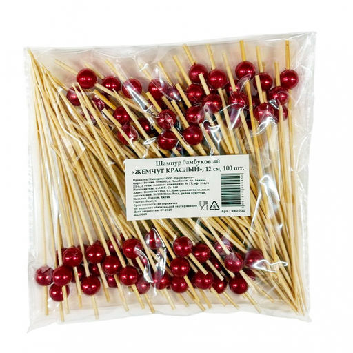 Стильные бамбуковые шампуры длиной 12 см с яркими жемчужными шариками на конце отличный выбор для оригинальной подачи закусок и фруктов. Природный материал гарантирует надёжность и безопасность, а яркий жемчужный декор добавляет праздничного настроения и элегантности вашей сервировке. В упаковке 100 штук удобное и экономичное решение для дома, пикников или торжеств. Такой аксессуар сделает ваши блюда не только вкусными, но и привлекательными для гостей.