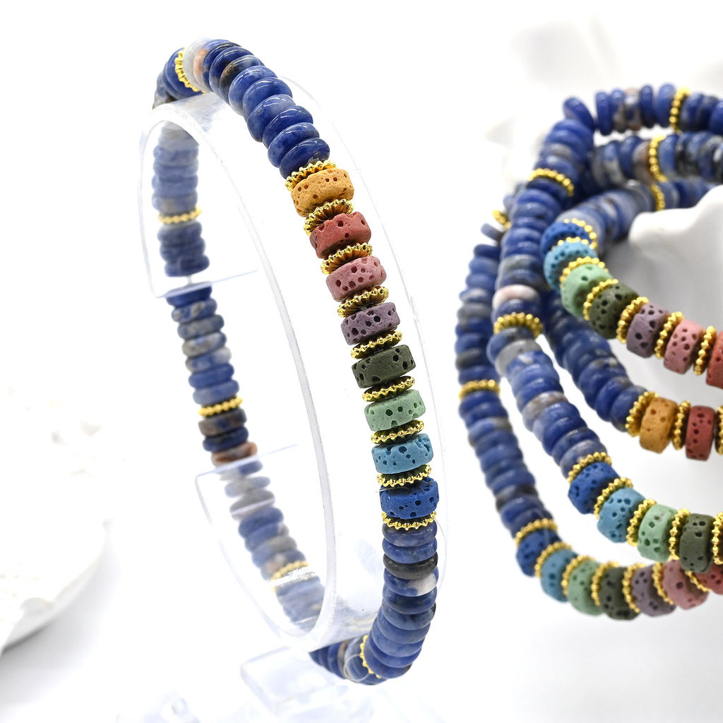 • Браслет из содалита диски 6*2мм со вставками из лавы, 16см