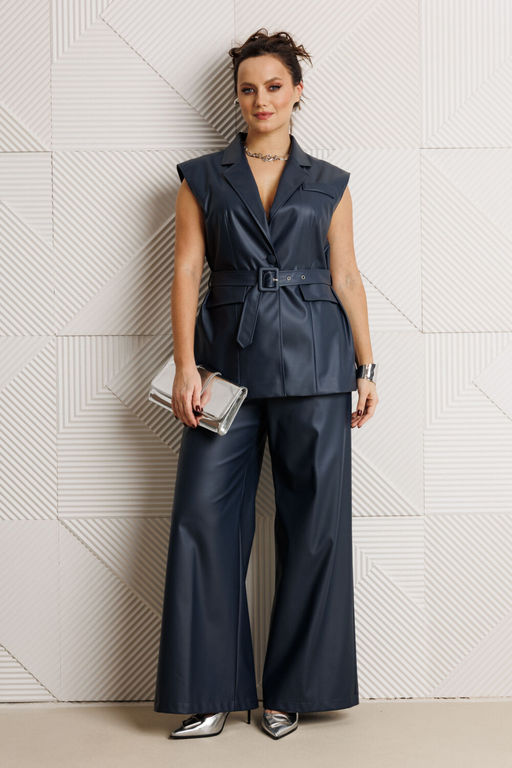 Состав: ПЭ-95%; Спандекс-5%; Стильный женский костюм, состоящий из жилета и брюк, выполнен из кожи (тянется). Жилет прямого силуэта на подкладке. Перед с талиевыми вытачками и настрочными клапанами. Застежка центральная на одну петлю-пуговицу. Горловина оформлена воротником пиджачного типа с лацканом. Спинка с рельефными швами, переходящими в шлицы и средним швом. По боковым швам жилета настрочены шлевки. В комплект входит пояс из основной ткани с пряжкой. Брюки прямого кроя с высокой посадкой с наклонными карманами в боковых швах. По срезу банта застежка-молния. Верхний срез оформлен поясом с эластичной резинкой по задней половинке. Замеры 50-60: Длина спинки жилета 68 68 68 69 69 69 Ширина спинки 42 42 42 45 45 45 Ширина изделия на уровне глубины проймы 1/2 56 58 60 62 64 66 ширина изделий по линии талии 1/2 54 56 58 60 62 64 ширина изделия на уровне линии бедер 1/2 57 59 61 63 65 67 Длина брюк по боковому шву 109 109 109 111 111 111 Ширина по талии 1/2 40-50 42-52 44-54 46-56 48-58 50-60 Ширина на уровне линии бедер 1/2 55 57 59 61 63 65 Длина брюк по внутреннему шву 77,5 77,5 77,5 77,5 77,5 77,5 Ширина брюк внизу ? 34 35 36 37 38 39 Высота посадки брюк спереди 32,5 32,5 32,5 34 34 34 Высота посадки брюк сзади 46,5 46,5 46,5 48 48 48 Обхват бедра 71 73 75 77 79 81 -- Характеристики -- Состав: ПЭ-95%; Спандекс-5%; Сезон: Весна Рост: 164 Страна бренда: Беларусь
