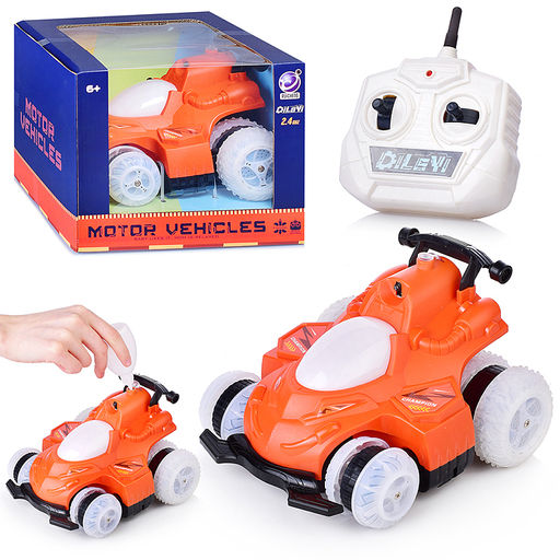 - машина движется вперед и назад, эффектно поворачивает и вращается, наклоняя сдвоенное колесо.