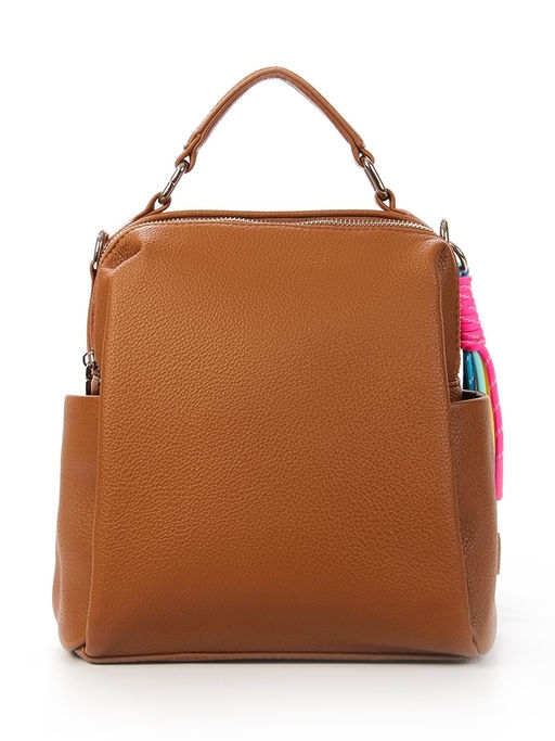 Рюкзак (сумка) женский выполнен из экокожи. Детали: две укреплённые стропой съёмные регулируемые ручки по 85 см, 1 съёмная регулируемая ручка на плечо 135см. Внутри изделия: 2 отделения на молнии, 1 карман для телефона, 1 открытый карман, 1 карман на молнии. Снаружи изделия: 1 карман на оборотной стороне на молнии, 2 боковых кармана. Брендированная подкладка из хлопка. Металлическая брендированная фурнитура. В комплекте фирменный пыльник.­