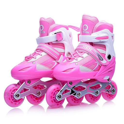 Роликовые коньки раздвижные, PU колёса со светом, размер S, розовые, в сумке