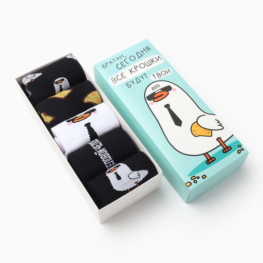 Для кого: Для мужчины. Назначение: Повседневная. В наборе, шт.: 5. Длина стопы, см: 27. Длина стопы, см: 29. Размер обуви: 41. Размер обуви: 42. Размер обуви: 43. Размер обуви: 44. Сезон: Всесезонный. Особенности: Классические. Тематика: Приколы. Вид упаковки: Подарочная коробка. Декоративные элементы: Без элементов. Рекомендации по уходу: Не отбеливать. Рекомендации по уходу: Стирка при 30 °С. Вид: С рисунком. Бесплатная доставка: Да. Наша разработка: Да.
