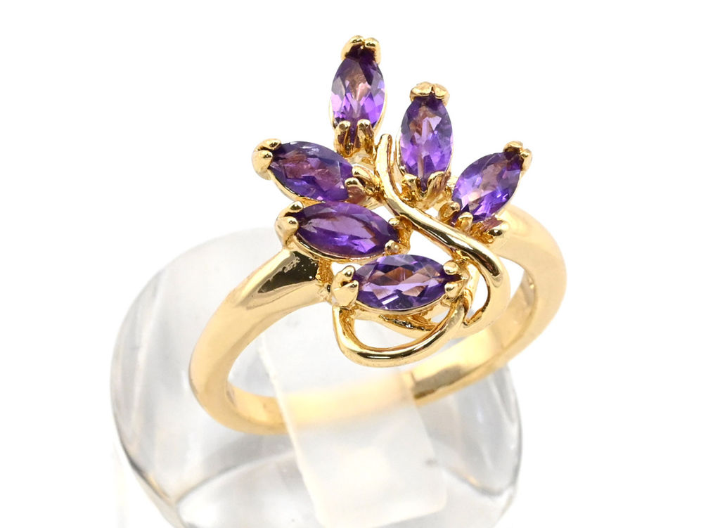 Кольцо c аметистом, кабашон, украшение из ювелирного сплава с нанесённым гальваническим методом золотым покрытием толщиной 1 микрон со вставками из аметиста­