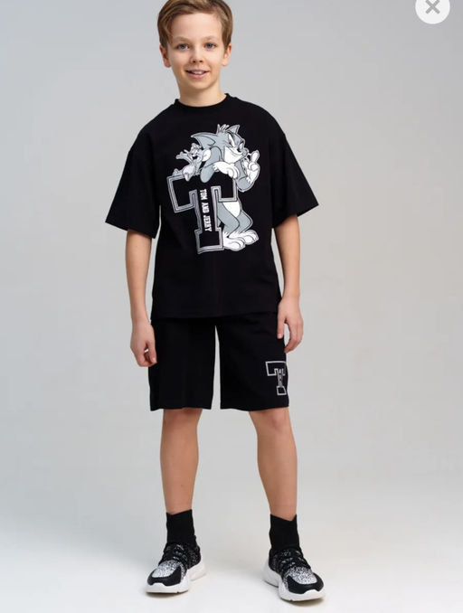 "Костюм для мальчика подростка. Комплект оверсайз: футболка, шорты с высоким содержанием хлопка 95%. Благодаря наличию эластана в составе ткани изделие проще в уходе и держит форму. Шорты на резинке со шнурком. Боковые карманы.