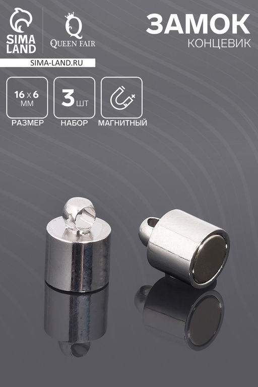 • Замок-концевик магнитный 16?6 мм, d петель=1.5 мм (набор 3 шт.), цвет стальной