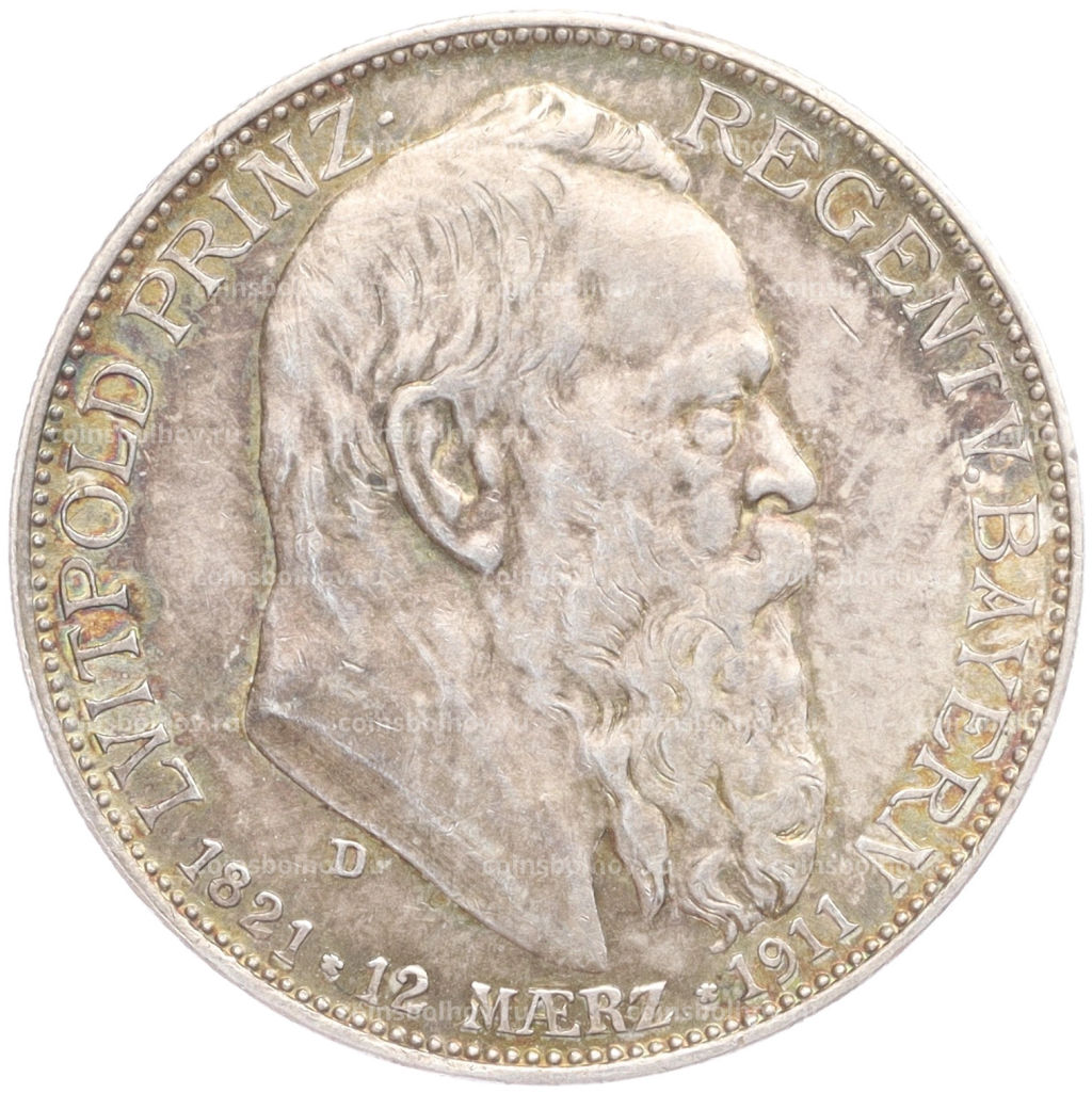 Монета 2 марки 1911 года D Германия (Бавария) 90 лет со дня рождения Луитпольда Баварского