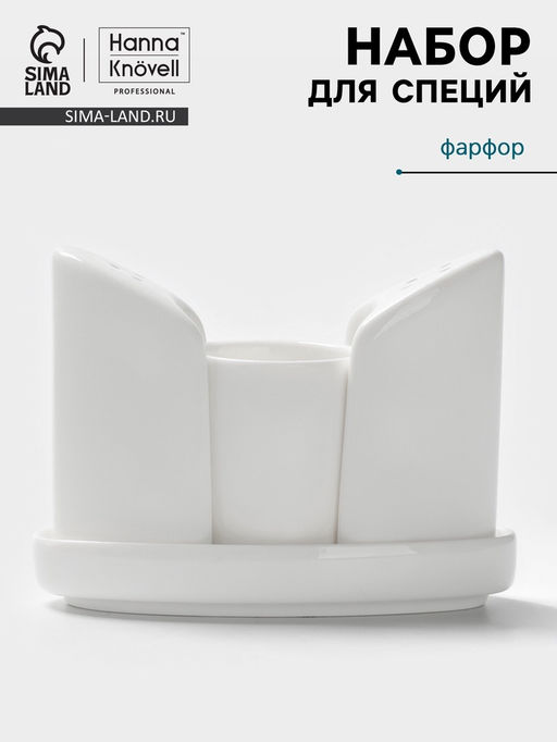 Набор для специй Hanna Knövell, 4 предмета: солонка, перечница, подставка для зубочисток, подставка, фарфор, белый