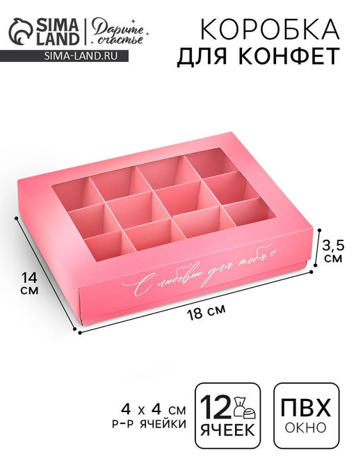 • Цена за 5 шт. Коробка складная под 12 конфет «С любовью для тебя», 14.4×18.4×3.8 см