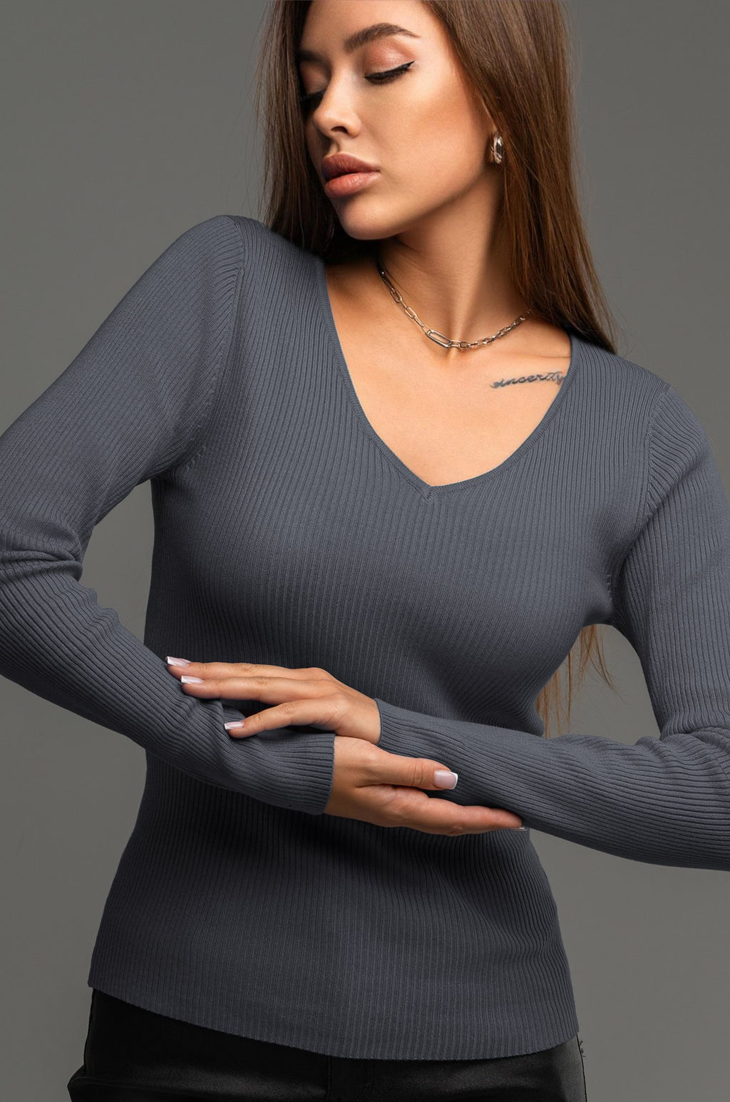 Женский джемпер в рубчик с V-вырезом Happyfox