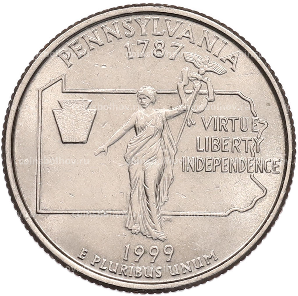 • Монета 1/4 доллара (25 центов) 1999 года P США Штаты и территории  Пенсильвания