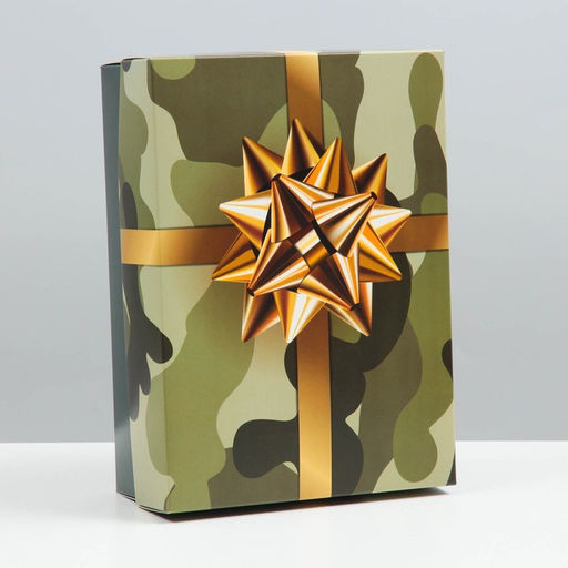 Цена за 5 шт. Коробка подарочная, крышка - дно, сборная Камуфляж с бантом, 21?15?7 см
