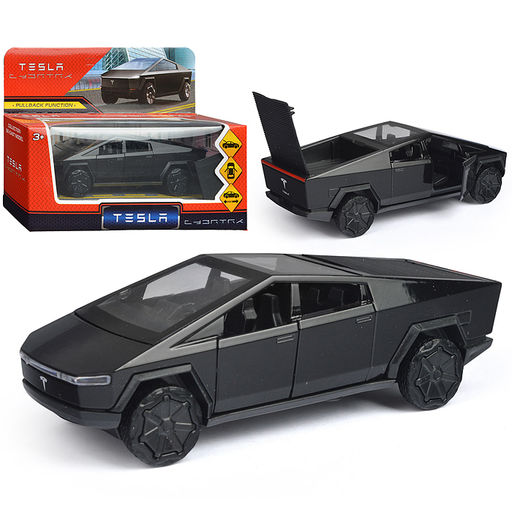 • Машина металл Tesla Cybertruck 13,7см, ( откр. дв, глянцевый черн,)инерц., в коробке