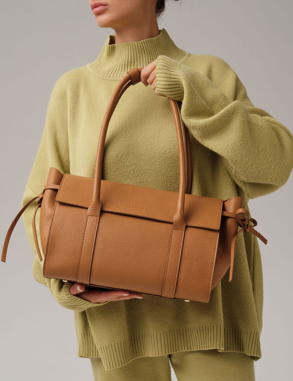 Детали: натуральная кожа, 1 внутреннее отделение на хлопковой водонепроницаемой подкладке, застежка на клапан с магнитом, обтянутым натуральной кожей, 1 внутренний закрытый карман на молнии, 2 открытых кармана, металлические ножки, боковая утяжка на кожаных ремешках, кожаный фиксатор для ручек на кнопке.­