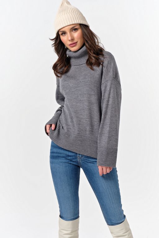 Джемпер вязаный шерстяной оверсайз серый меланж