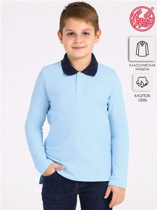 поло,хлопок 100%,пике / хлопок 100%,светло-голубой109+темно-синий77 / - / - / - / - / -,Поло для мальчика выполнено из хлопкового полотна. Изделие с длинными рукавами, с застежкой на кнопочки. Отличный вариант для школы! Уход: только машинная стирка (руками не стирать!) при температуре 40 градусов, без предварительного замачивания.