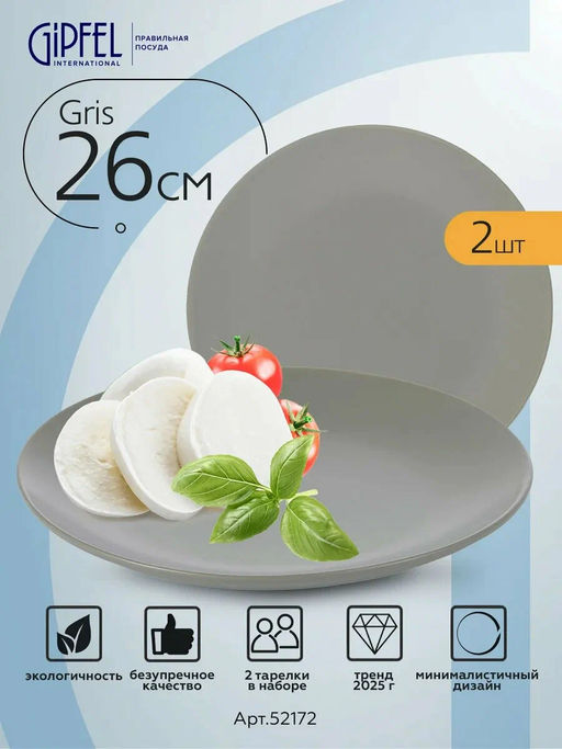 Набор тарелок Gipfel Gris 52172, диаметром 26 см. В наборе 2 тарелки.