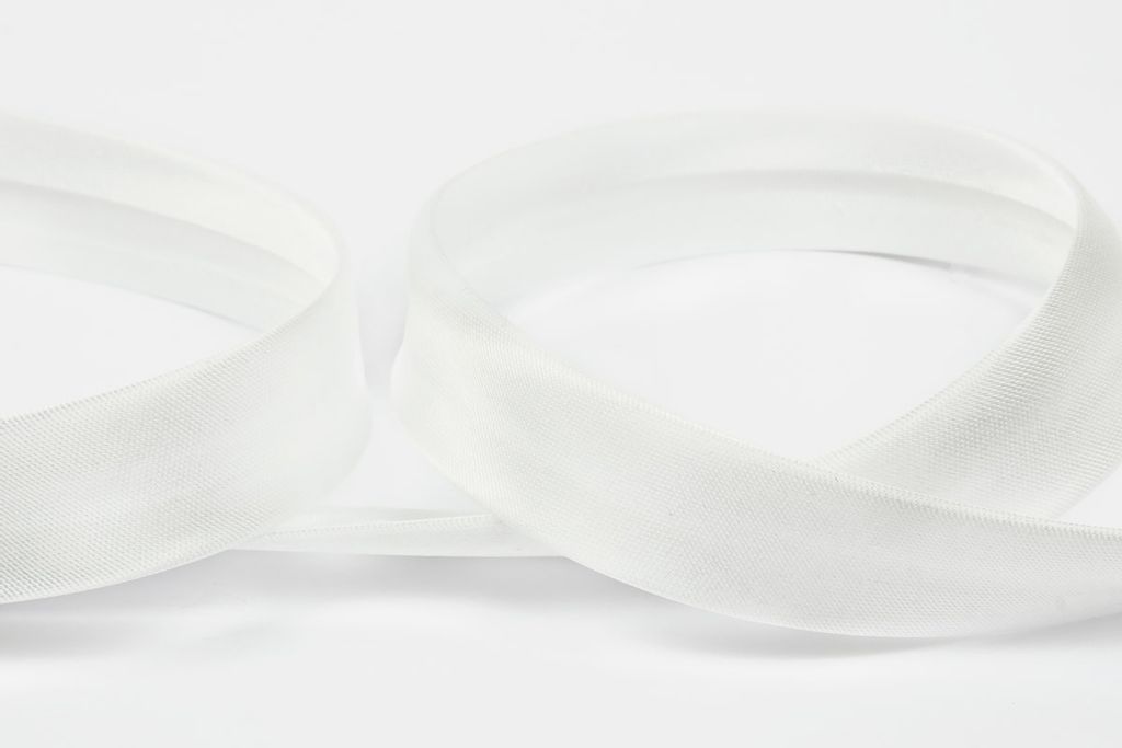Полиэстеровая тесьма, выкроенная по косой, с заранее подогнутыми припусками. Она достаточно мягкая, легко укладывается на неровные срезы без складок и без смещения, образуя ровный красивый борт. Применяется для обработки срезов бортов, для горловины, при шитье рукава одежды. Также ее применяют при изготовлении мебели, отделки предметов интерьера включая шторы.