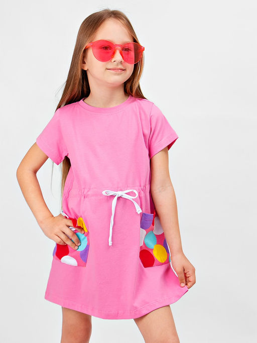 Платье для девочки свободного силуэта - трапеция. Легкий, натуральный материал-кулирка прекрасно пропускает воздух, обладает высокими гипоаллергенными свойствами. Идеальное решение для отдыха или прогулки в жаркий, летний день.