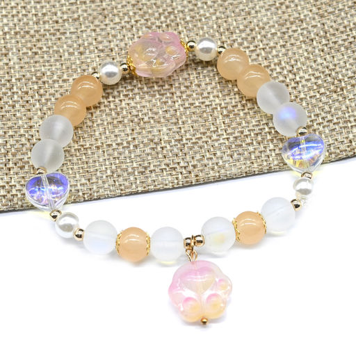 • Браслет с подвеской "Лапка" шарик 8мм цв.кремовый, 17см