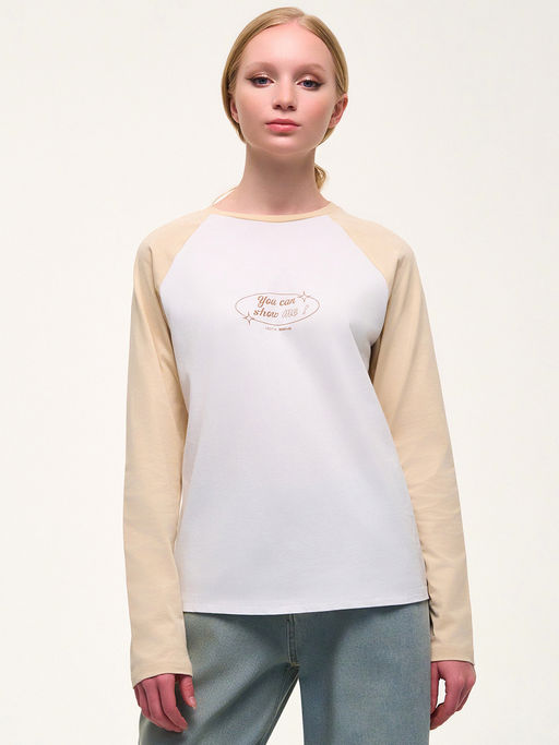 Лонгслив из трикотажа средней плотности с рукавом реглан. Минималистичный принт спереди. Состав:100% хлопок