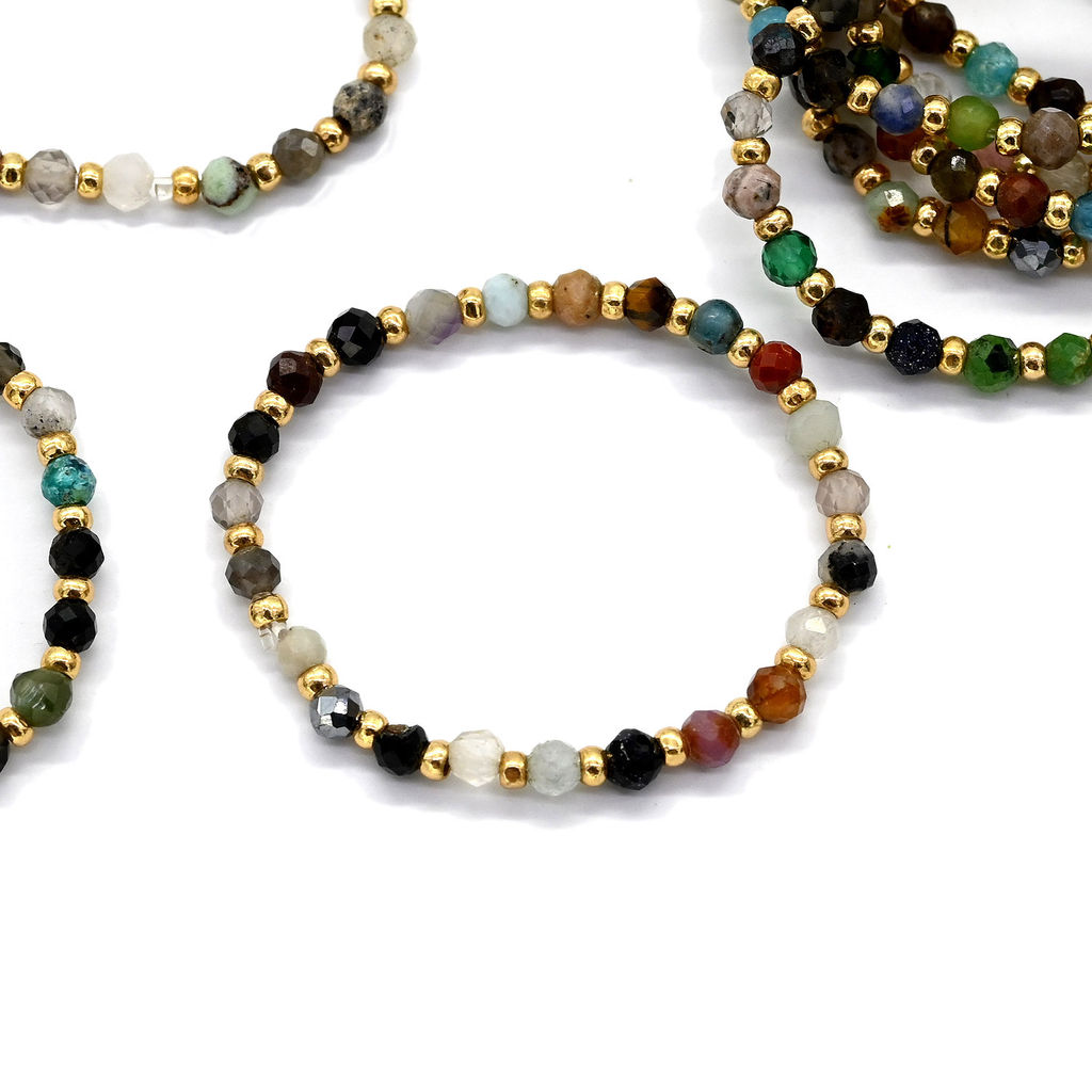 • Кольцо на резинке с самоцветами шарик 2мм Радуга камня