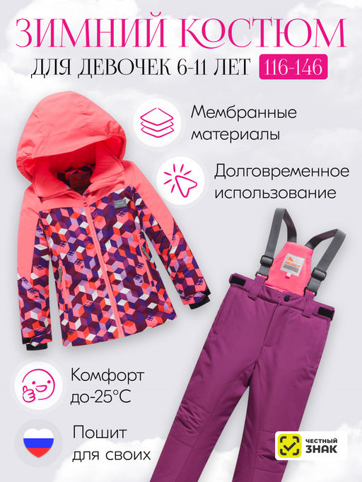 Этот костюм станет отличным выбором для активных девочек, обеспечивая как стильный внешний вид, так и комфорт во время активного отдыха! Уверены, вы по достоинству оцените высокое качество нашей продукции! Пусть зима станет временем незабываемых приключений!