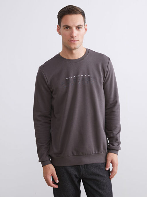 Bisiklet Yaka Bask?l? Erkek Kal?n Sweatshirt