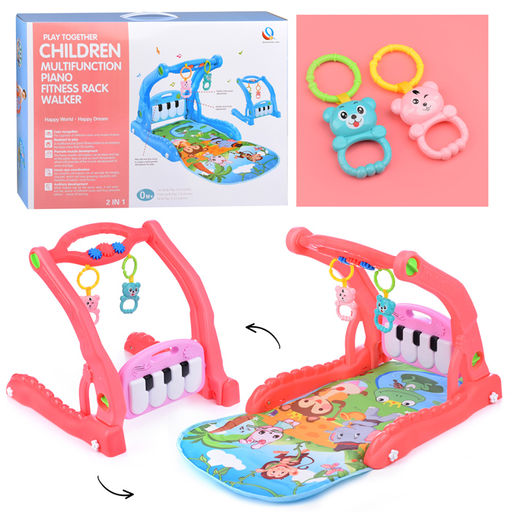 • Коврик развивающий/ходунки "Веселые друзья" розовый, с пианино, в коробке