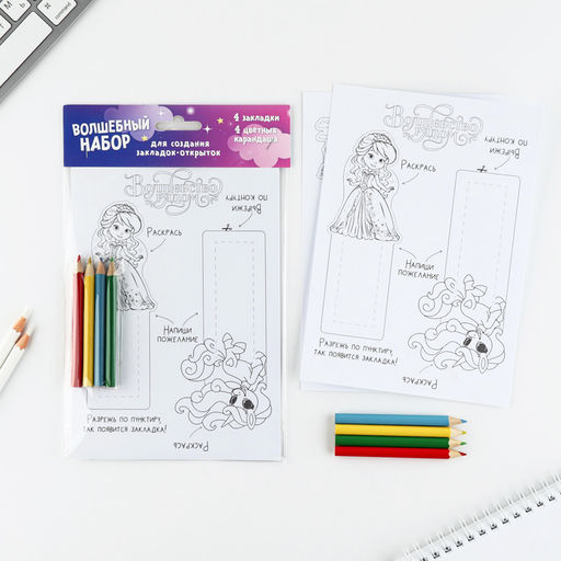 • Подарочный набор, для создания закладок Принцессы, бумага, 4 карандаша