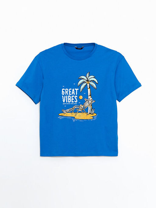 Bisiklet Yaka Bask?l? Penye Erkek Ti??rt