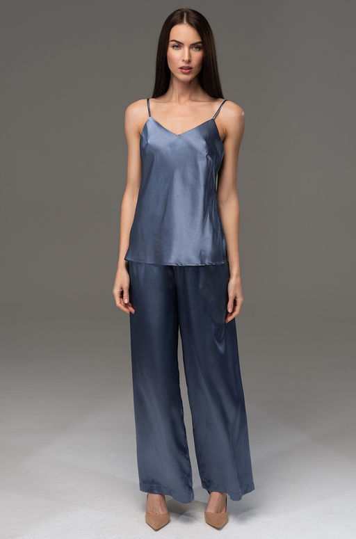 Комплект Mia-Amore состоит из топа с регулируемыми бретелями и широких брюк. Комплект выполнен из искусственного шелкового полотна с атласным блеском. Состав:100% полиэстер