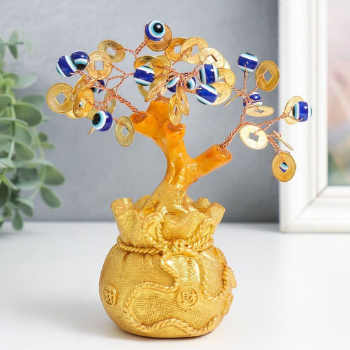 • Бонсай декоративный «Денежное дерево в золотом мешке», 16 глазиков, 32 монеты, 15×6.5×6 см