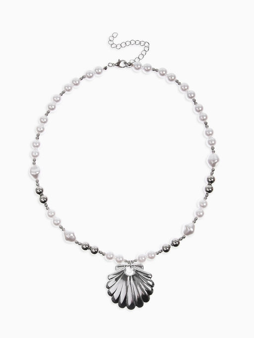 • Кулон на жемчужных бусах "Ракушка", цвет белый в серебре