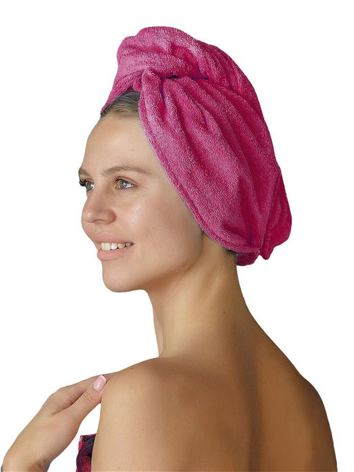 Полотенце для волос махровое чалма - это удобная замена большому банному. Очень легко надевать и снимать, не спадает с головы за счет фиксации чалмы на пуговицу. Достаточно просто опустить голову вниз, укутать волосы, перекинуть один раз через голову и застегнуть. Мягкая ткань 100% хлопок не травмирует локоны и помогает поддерживать здоровый и сияющий блеск волос. Для защиты от термического воздействия используйте шапочку в бане, сауне или хаммам. Как спортивное полотенце в тренажерном и спортивном зале, после водных процедур. Банное полотенце очень компактно, поместится в любой сумочке и на любой полочке. Универсальный размер 20 на 70. За счет застежки не спадет, что позволяет свободно двигаться, не беспокоясь. Тюрбан для сушки легко надевать на любые волосы — длинные, короткие, тонкие и даже самые объемные кудрявые. Полотенца для ванной очень качественные, отлично впитывают влагу в отличие от микрофибры, не линяет при стирке в горячей воде, долговечно, что не скажешь о вафельных. Оригинальный подарок подруге, не нужно ломать голову что подарить бабушке или чем порадовать сестру, свекровь, себе любимой в дом на любой праздник.­
