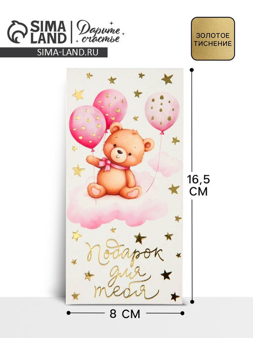 • Цена за 10 шт. Конверт для денег «Подарок для тебя», тиснение, 16.5×8 см