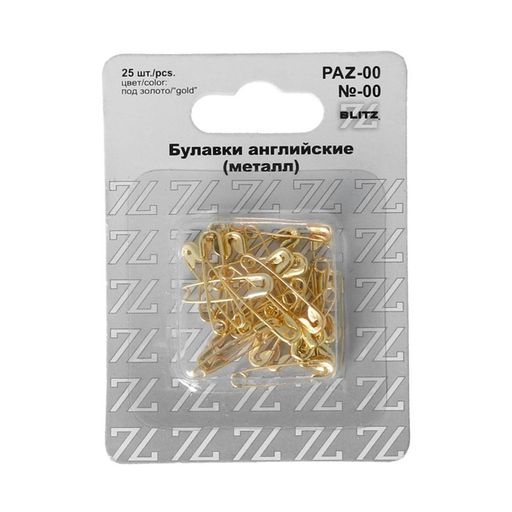 Булавки английские BLITZ PAZ-00 №00 под золото железо в блистере 25 шт 22 мм