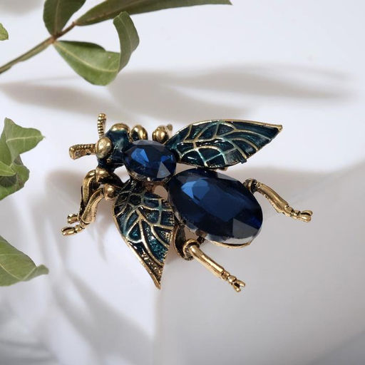 • Брошь «Муха», крупная, тёмно-синяя в чернёном золоте