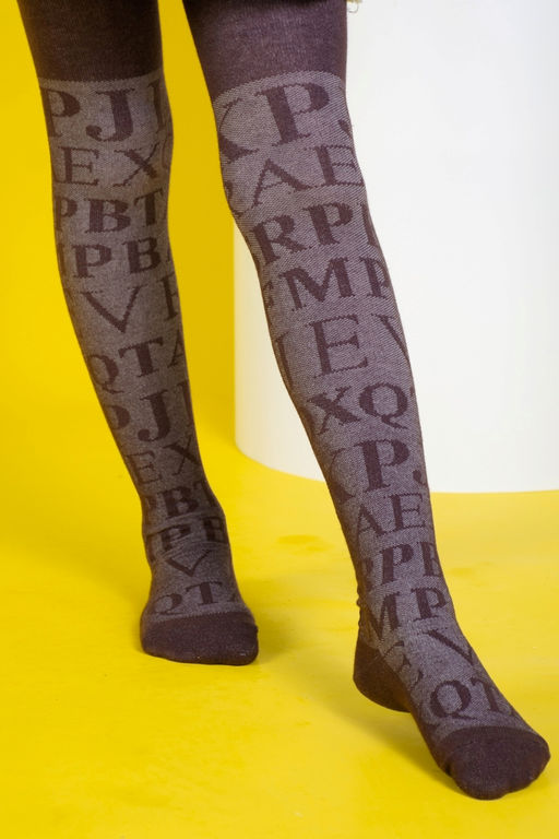 Подростковые колготки с лаконичным рисунком в виде букв - модель отлично подойдет как для школы, так и на каждый день.