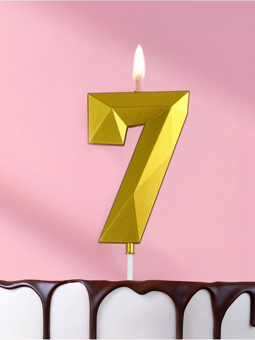 Свеча в торт на шпажке «Грань», цифра 7, золотая, 9 см, ГИГАНТ