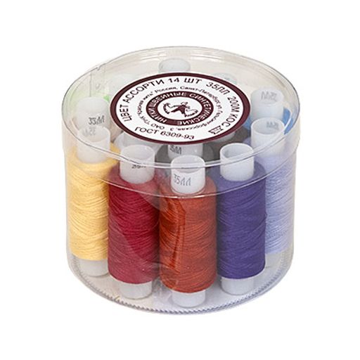 • Швейные нитки (армированные) 35 ЛЛ 200 м КН АССОРТИ 14 шт в пластик. коробке