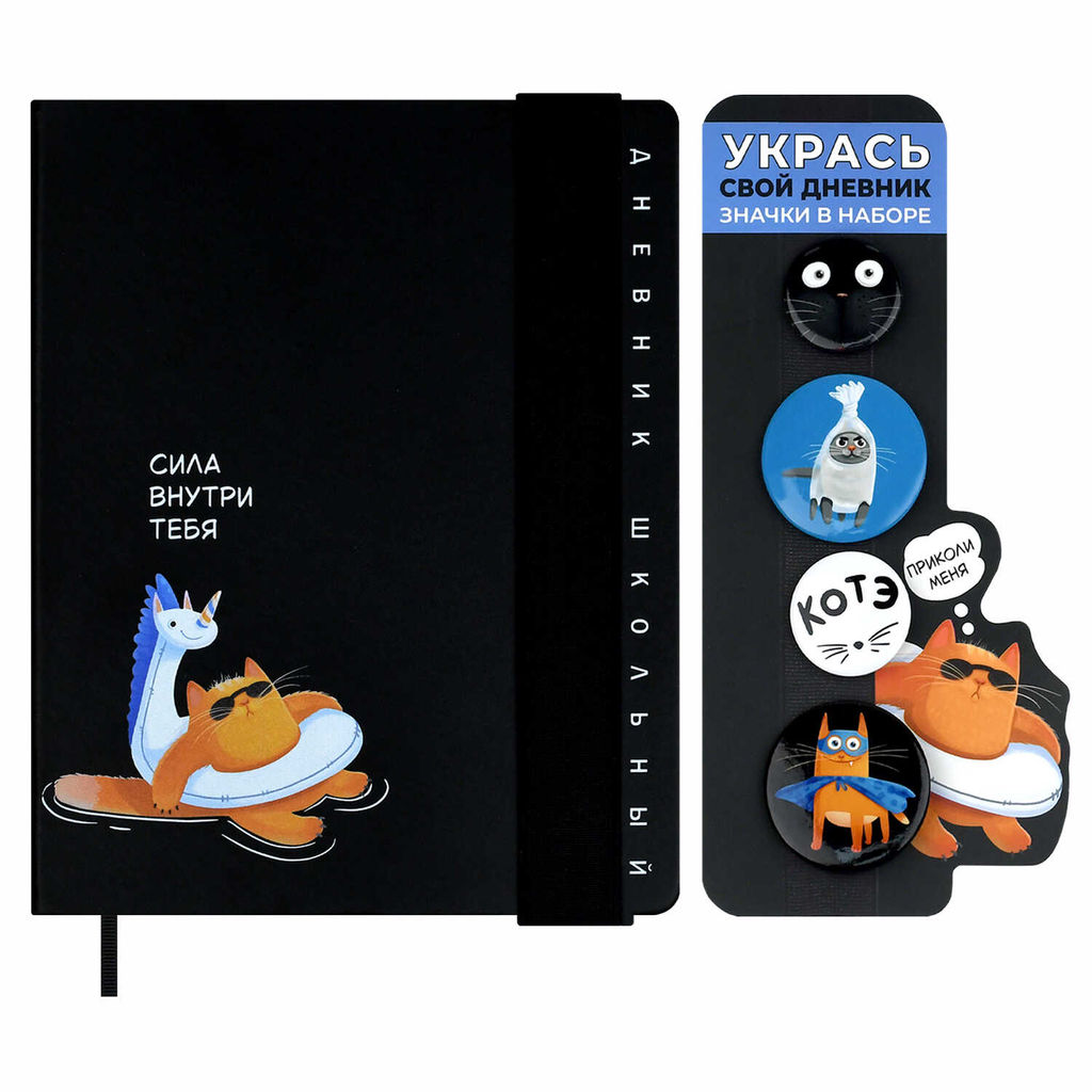 Дневник школьный в комплекте со значками на булавке, А5+, 48 л. арт. 72529 / 15 СУПЕРКОТ
