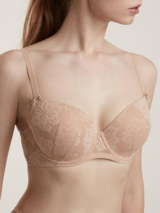 Бюстгальтер из эластичного кружевного полотна . Ластовица на подкладке из неэластичного полотна. Чашки формованные, на каркасах.
