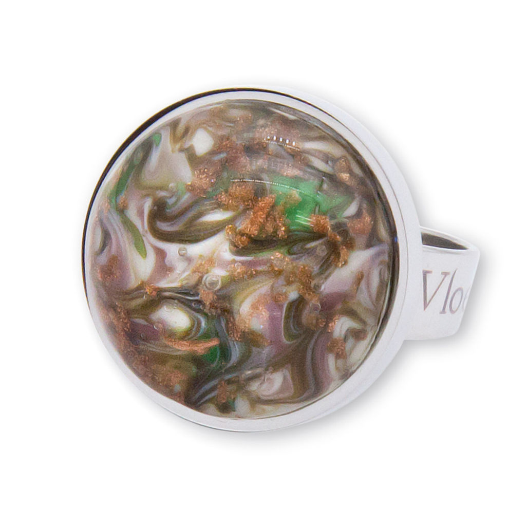 Кольцо изготовлено из муранского стекла и гипоаллергенной ювелирной стали, что очень важно для людей с чувствительной кожей. Металл не темнеет и не подвергается воздействиям окружающей среды, надолго обеспечивая красивый внешний вид изделия. Диаметр стеклянного элемента - 2 см. Кольцо безразмерное, регулируется с 16 до 19 размера. Вес - 8 гр.