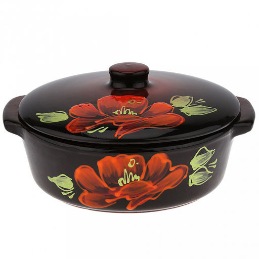 • Лоток для запекания керамический "Десерт" 2л, д23,5см, h12,5см, "Мак черный", малый, с ручками, с крышкой (Россия)