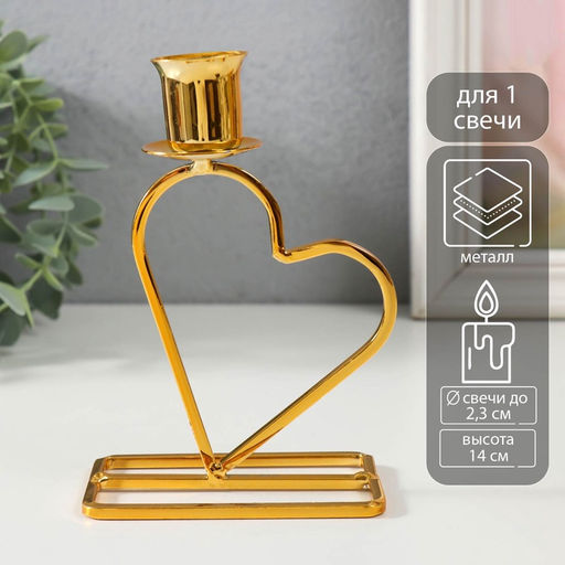 Подсвечник на 1 свечу Сердце, металл, d=2.3 см, золото, 5.8?9.3?14 см