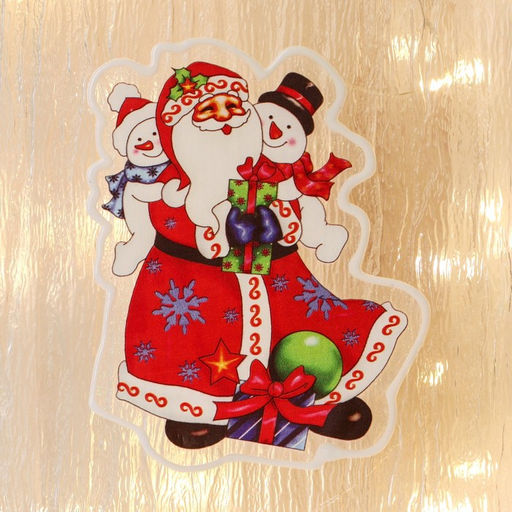Цена за 3 шт. Наклейка на стекло «Дед Мороз со Снеговиками-малышами», 10×13 см
