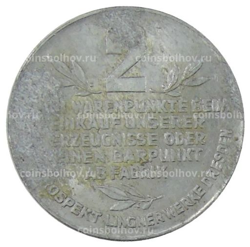 Монета Жетон платежный 2 пункта Германия (город Дрезден) фабрика Карла Лингнера